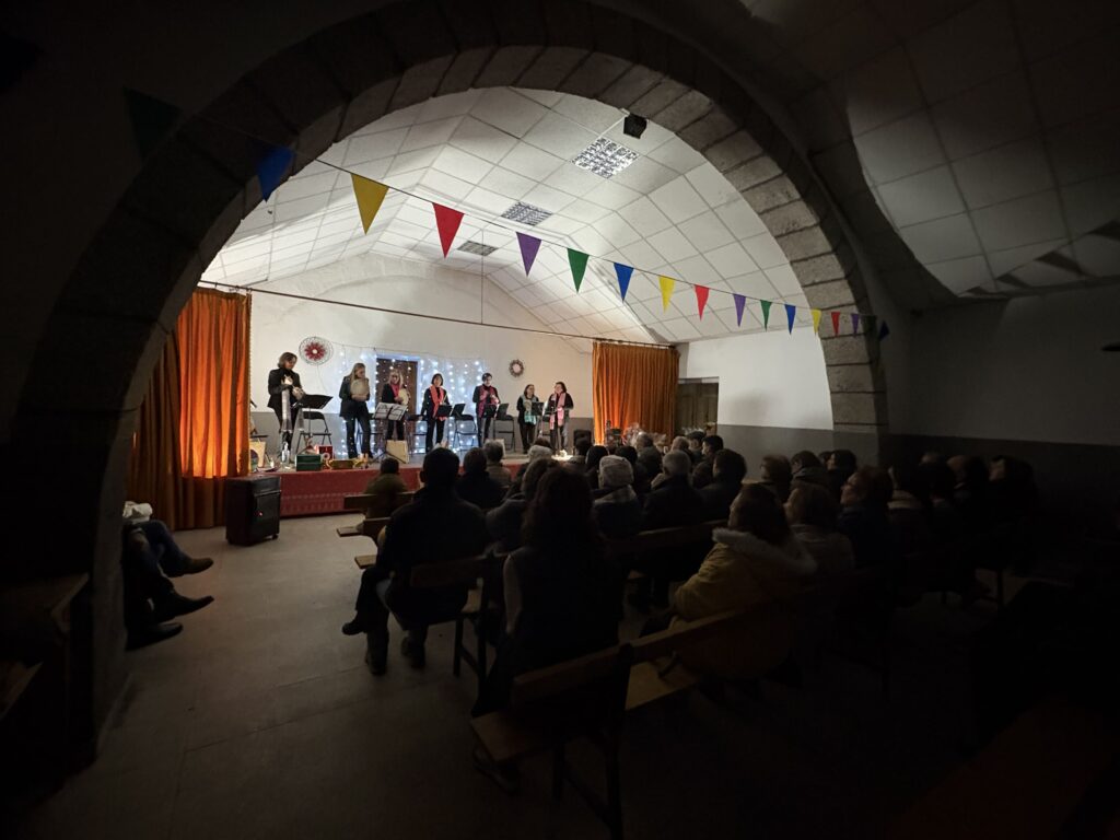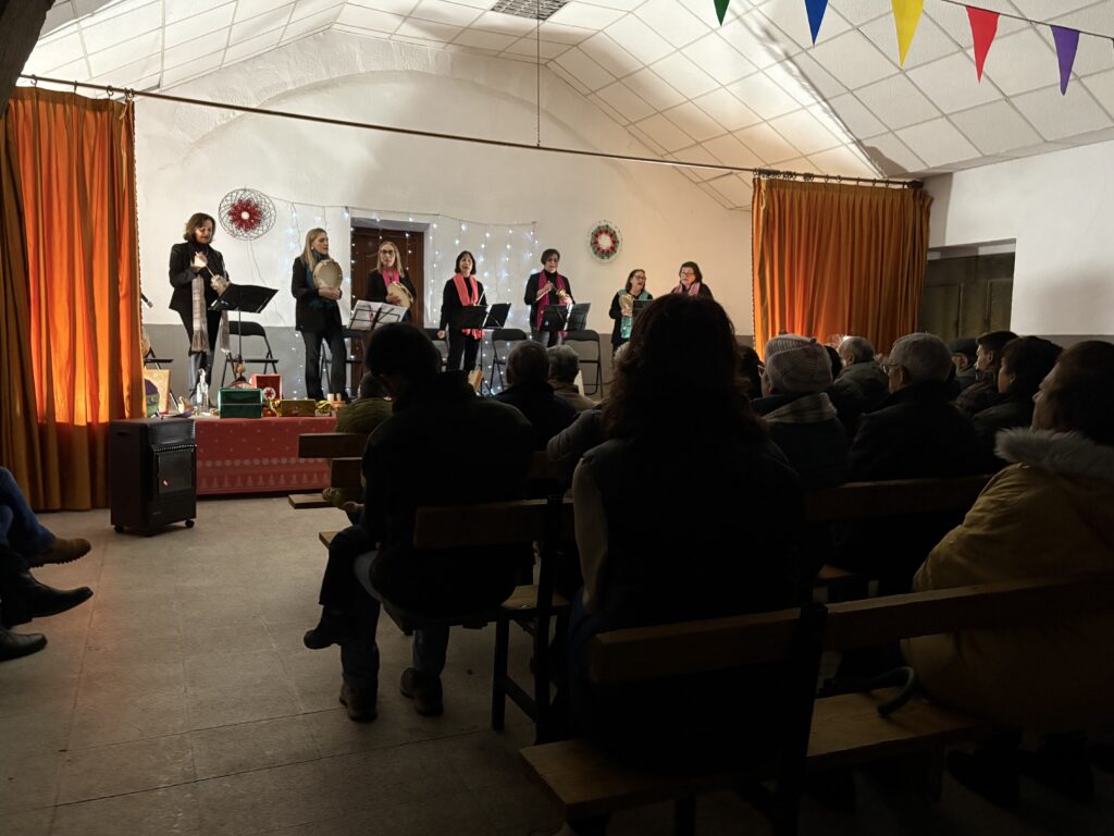 El acto se inició con la actuación del Grupo de Canto y Percusión de Lumbrales, el cual interpretó un repertorio de villancicos populares y tradicionales, a lo que añadió -en muchos casos- la correspondiente explicación sobre el origen y su recuperación en diferentes aldeas de la provincia de Salamanca. El momento más cómico fue el protagonizado por los más pequeños, a los que -en una de las piezas- solicitaron ayuda para hacer sonar los típicos pajaritos de barro.